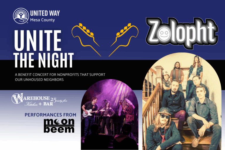 Join United Way of Mesa County for the second annual Unite the Night Concert at Warehouse2565 on Friday, January 30! Start the night with the incredible sounds of MoonBeem, then rock out with the headliner Zolopht. This isn’t just a concert—it’s an opportunity to make a meaningful impact. Every dollar raised will support local nonprofit programs providing essential resources and pathways to stability for our unhoused neighbors. Gather your friends, enjoy amazing music, and be part of a community united for a great cause! Doors open at 6:00, show at 7:15. Thank you to Warehouse 2565, DWC CPAs and Advisors, Groundworks and Timberline Bank for their support of this event! Tickets